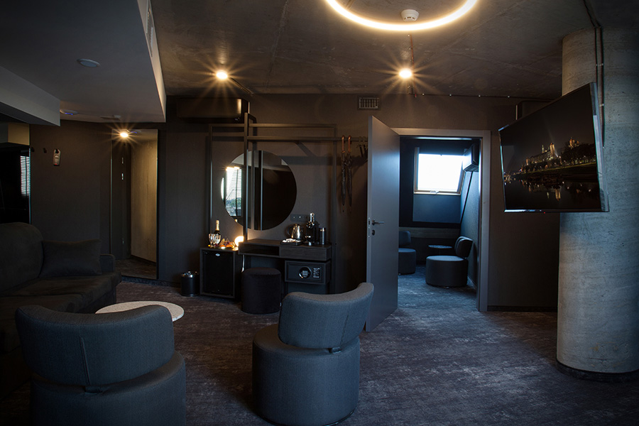Nieszablonowy apartament o powierzchni 50 m2, składający się z dwóch sypialni z prywatnymi łazienkami oraz salonu, w pełni wykorzystujący zaawansowane rozwiązania technologiczne typu smart. Indywidualne sterowanie klimatyzacją, oświetleniem, roletami, systemem telewizyjnym oraz otwieranie drzwi za pomocą tylko jednego urządzenia na miarę XXI wieku.