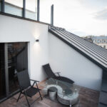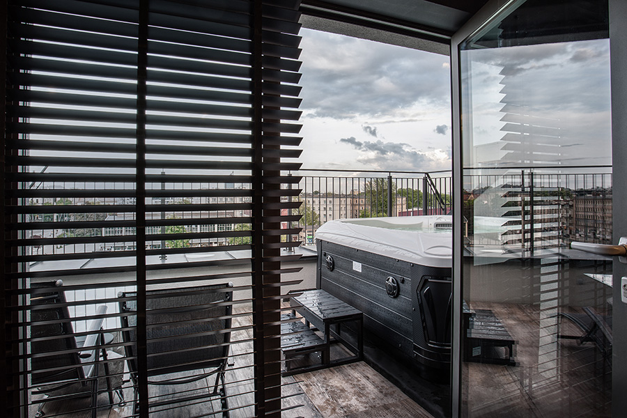 Prywatne jacuzzi zlokalizowane na przestronnym tarasie zachęca do chwili relaksu i cieszenia się widokiem z najwyższej kondygnacji Hotelu.